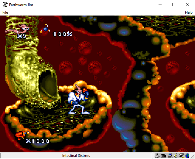 I’ve spent a lot of the last 10 days playing computer games (I couldn’t focus easily on reading, films or TV) and I had a strange memory resurface of thinking I was playing a level on Earthworm Jim (1994, Sega Mega Drive) called ‘Intestinal Distress’ whilst high on drugs during my last colonoscopy. Strange how these things come back to you. If you’ve never had a colonoscopy, I would like you to know that it is nothing like this. I would love to know who designed this level though (and the music!).