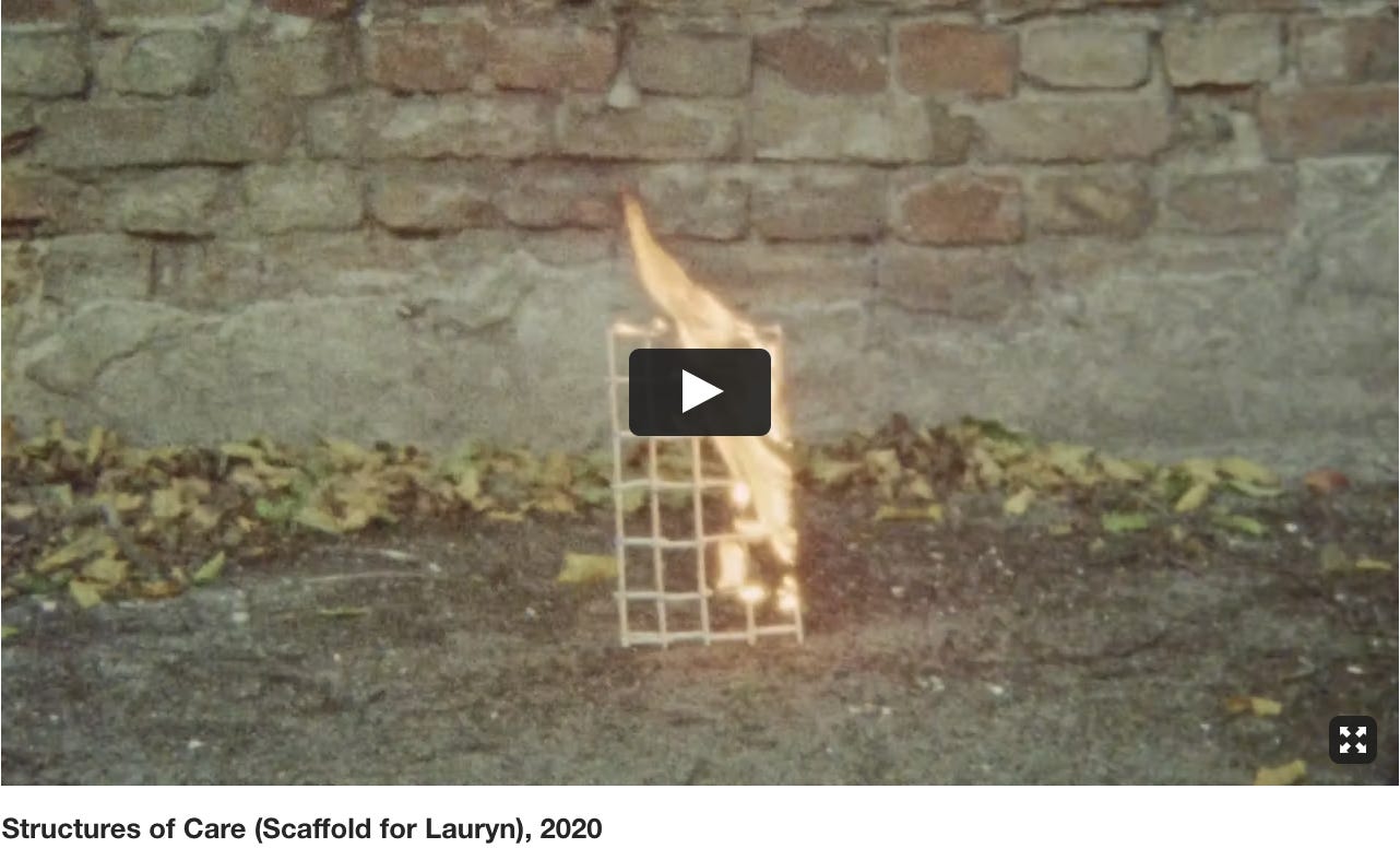 “[Structures of Care] speaks to precarity, devotion and care in a time of isolation and uncertainty. Sick and disabled bodies, already living under the strains of late stage capitalism and an inability to adhere to expectations of labour, productivity and worth, are once again shown to be dispensable in the eyes of normative culture during a global pandemic. How can we care for each other in these times? How can we foster much-needed tenderness and meaningful support within our communities? These caring structures that we make, although fragile and built on flimsy foundations without structural support, are nonetheless vital.”